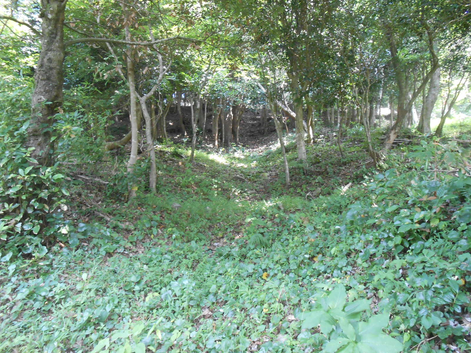 二の丸東(井戸曲輪北)側には数段の曲輪群があり、中央には薄いですが竪掘も♪