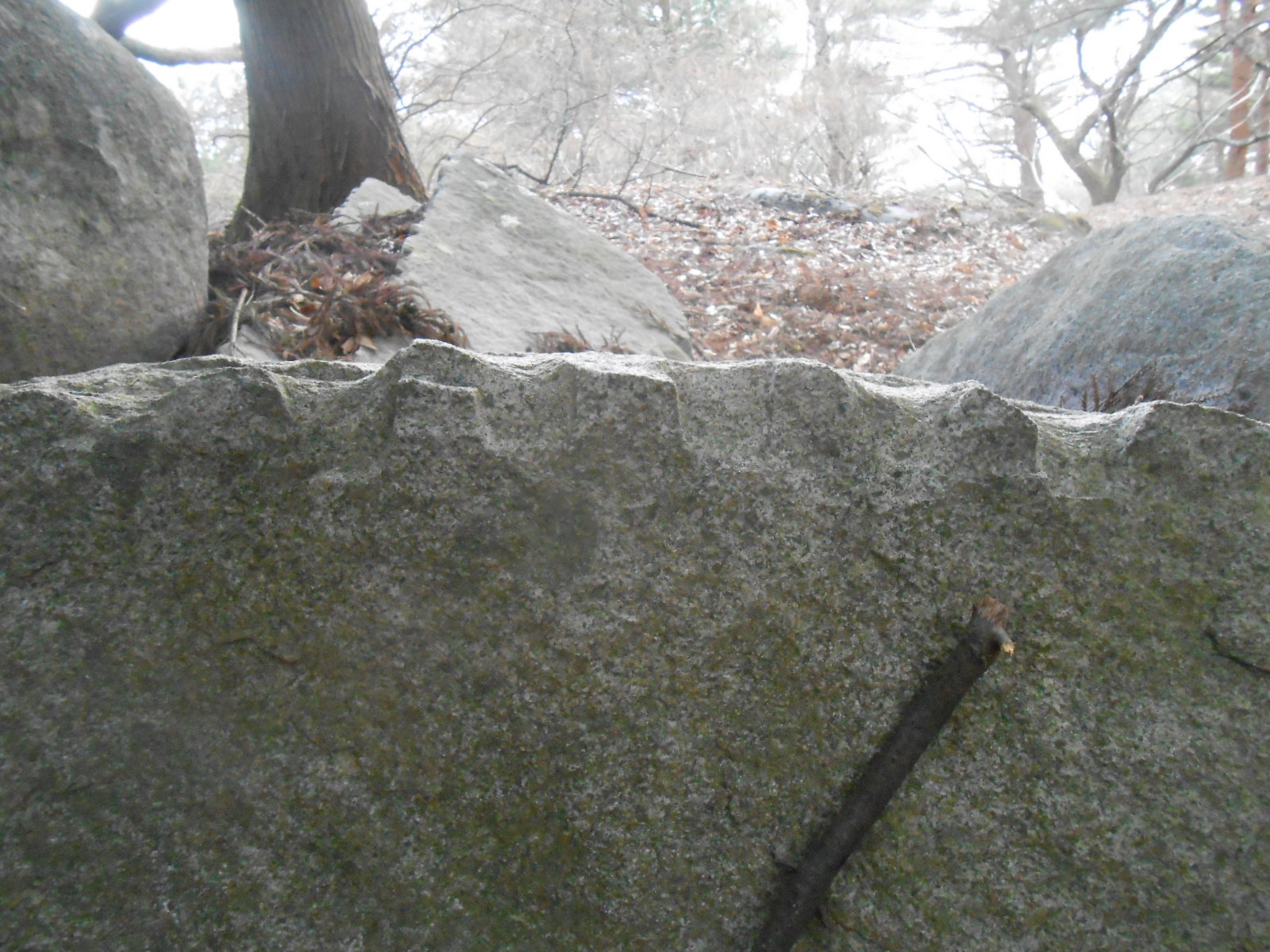 とりあえず後回しにして2郭をぐるっと散策すると大岩に囲まれた祠があり、頑張って削った痕跡も♪♪