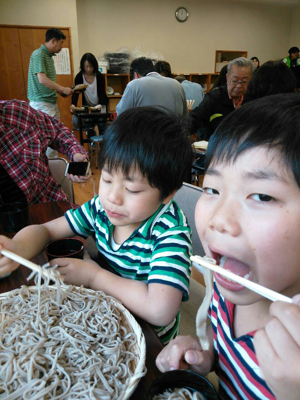 次男は相変わらず寝てましたが長男は既に起きて毎度のごとくブーイングの嵐でした((+_+))