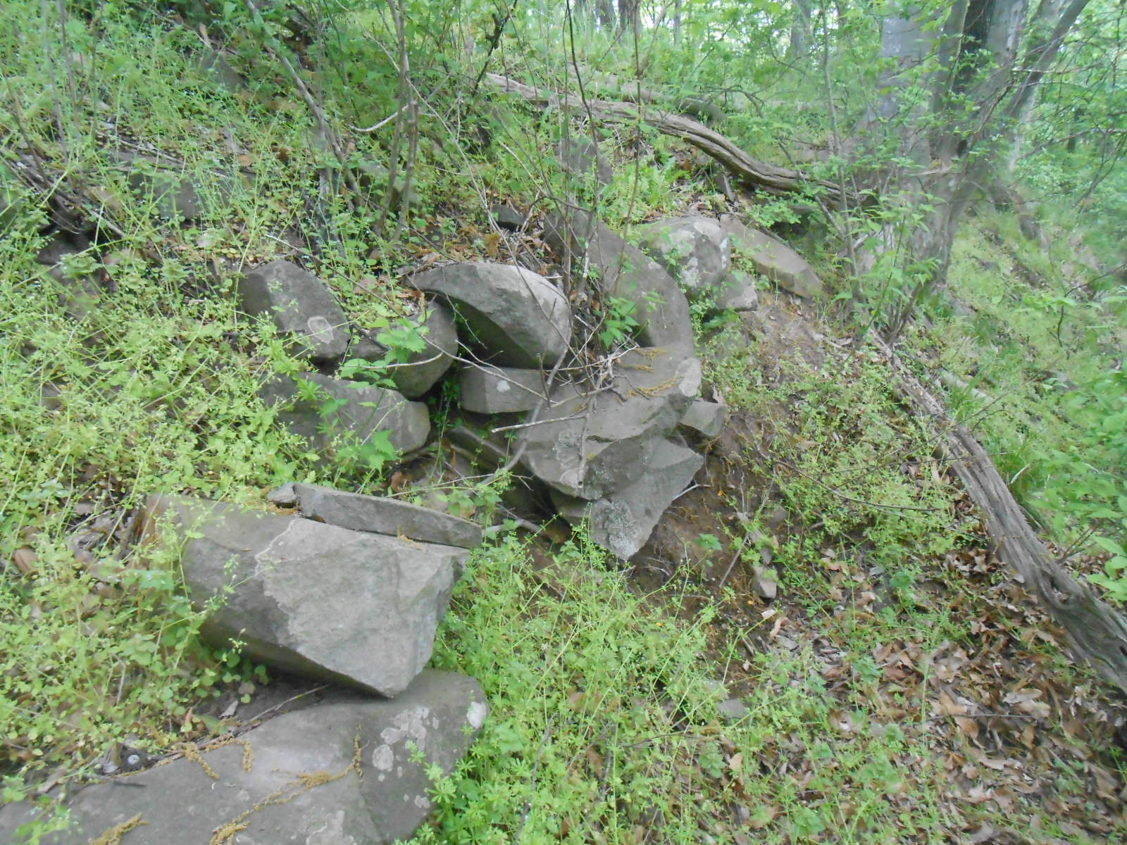 なんとなくの道を下って行くと石がゴロゴロと・・・